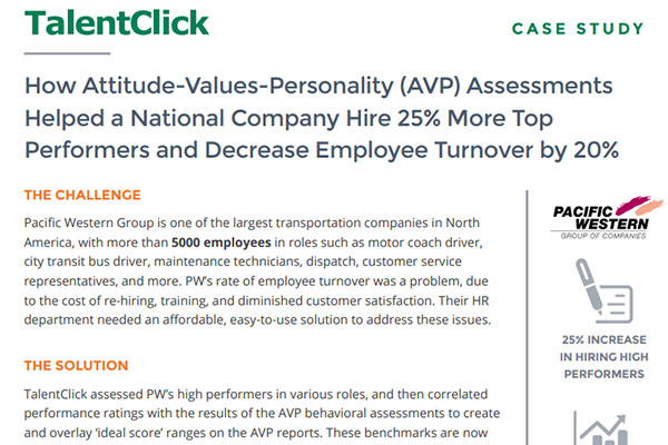 Read how Attitude-Values-Personality (AVP) assessments helped a national company hire 25% more top performers and decrease employee turnover by 20% Case Study – PWT […]